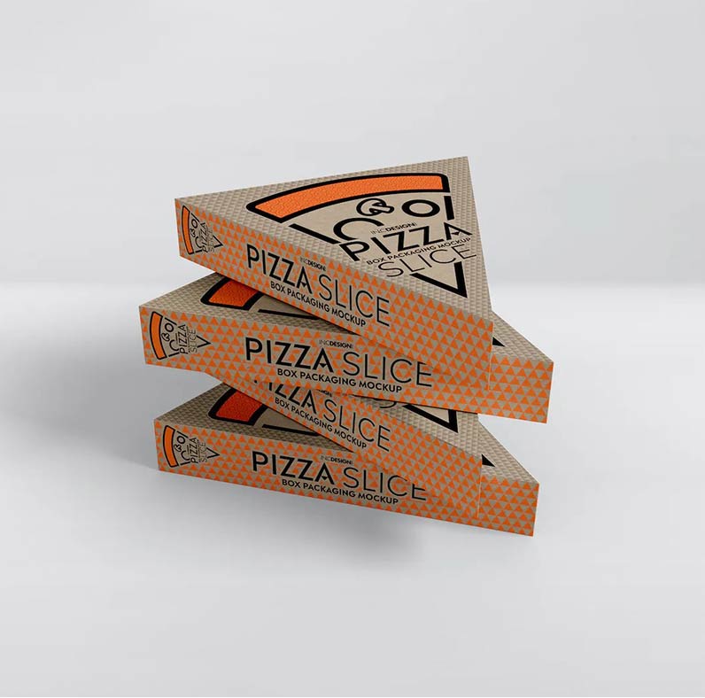پیتزا در اشکال مختلفی پخته می شود که یکی از آنها، پیتزای مثلثی است. جعبه پیتزای مثلثی نیز اصولا در دو شکل تولید می شود، هم می توان آن را با سه ضلع برابر تولید کرد هم با دو ضلع برابر (مثلث متساوی الساقین). این جعبه های مثلثی عموما به صورت یک تکه تولید می شوند.