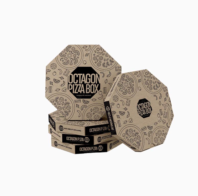 این جعبه ها به دلیل طراحی خاص مورد توجه فست فود ها، رستوران ها و مشتریان آنها قرار گرفته است. این مدل از جعبه های پیتزا را می توان هم به صورت دو تکه (سری، کفی) و هم کلاسیک (لپتاپی) تولید نمود. این جعبه ها علاوه بر زیبایی ظاهری بیشتر نسبت به جعبه های مربعی، قیمت مناسبی نیز دارند.